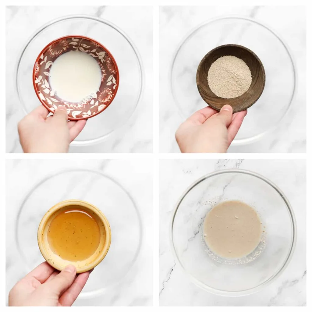 Combine the lukewarm water, lukewarm milk, honey, and yeast in a bowl. Mix well and let it sit for 5 minutes