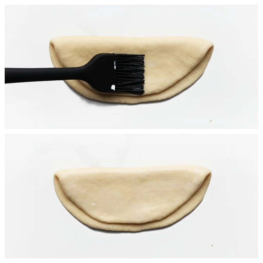 Roll each ball of dough into a rectangle about 15 x 13 cm (11 x 10 inch) and fold it in half.